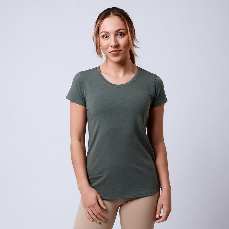 Bambu t-shirt till dam Modern passform 46% Bambu, 49% Bomull, 5% Lycra Maskintvätt Modellen har storlek XS och är 162cm lång