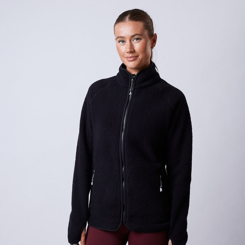 Svart fleecejacka dam Normal passform 100% Återvunnen polyester Maskintvätt Modellen har storlek S och är 170cm lång