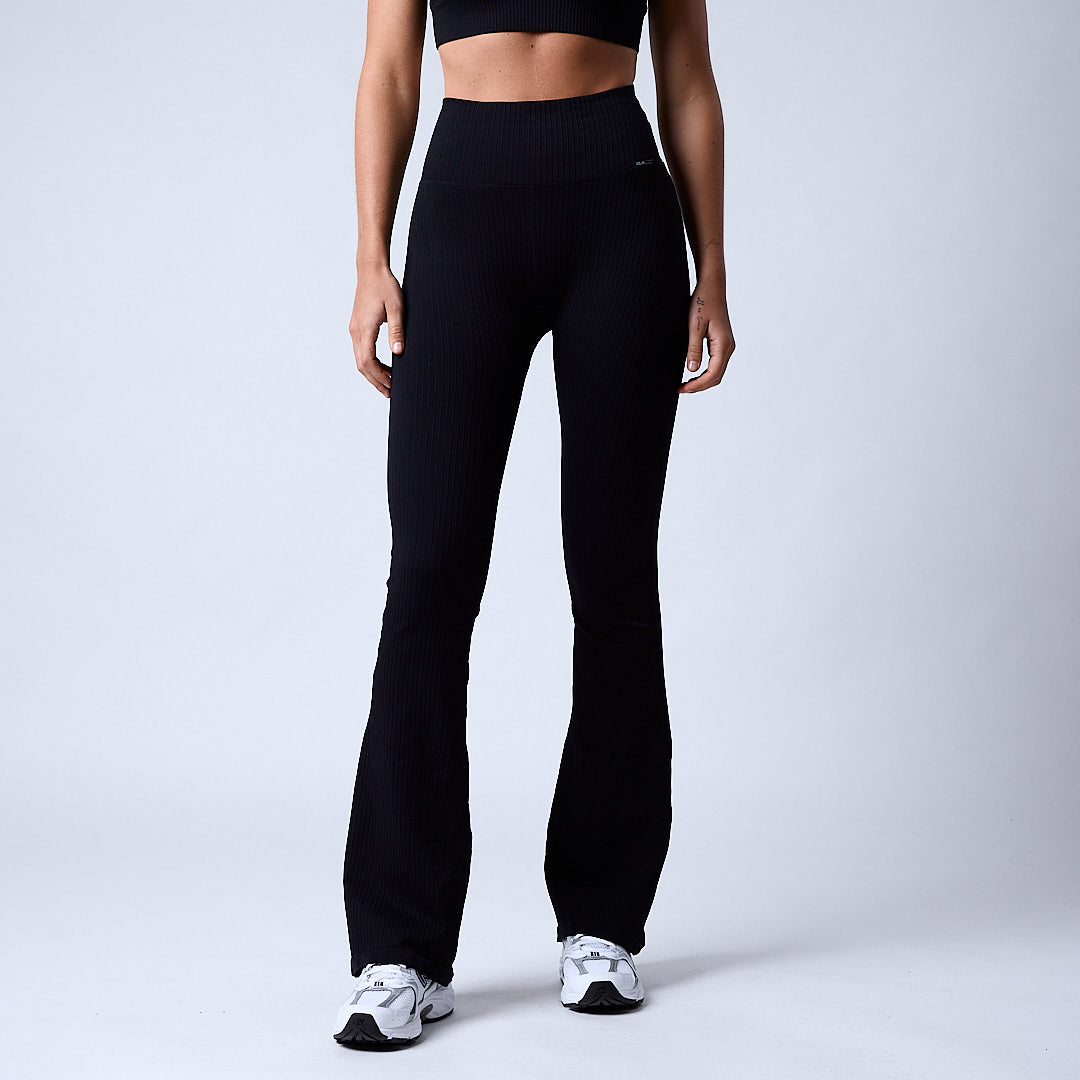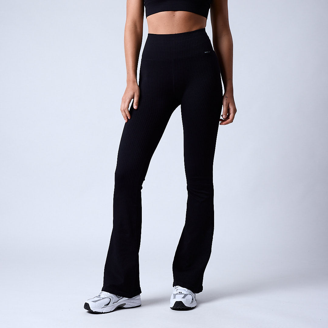 Magic ribbed seamless flare tights Black