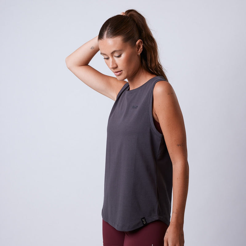 Grått träningslinne dam För högintensiv träning & CrossFit Lösare passform 60% Bomull, 40% Polyester Maskintvätt Modellen har storlek S och är 170cm lång