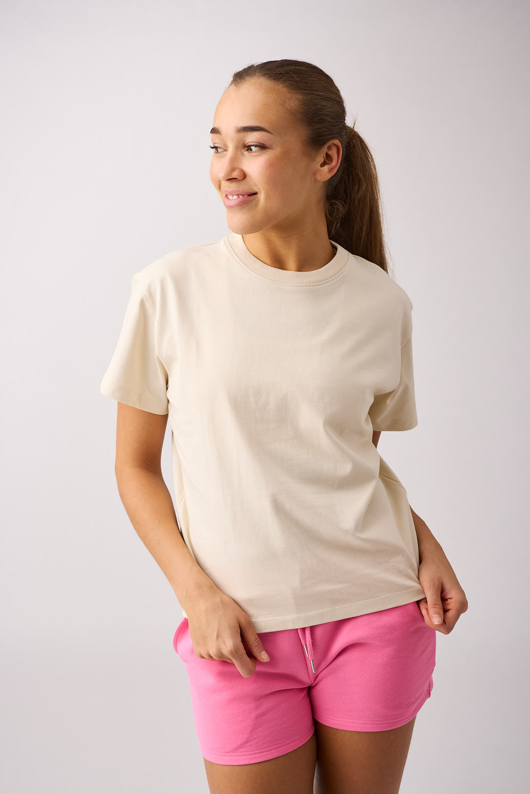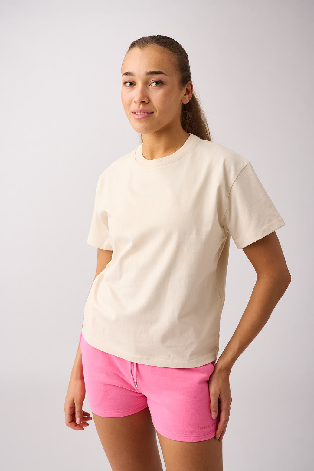 En tidlös t-shirt som balanserar komfort, stil och feminin attityd.